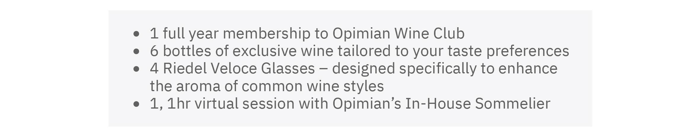 Announcing the Winner Congratulations to Bonnie Alsop, winner of the Wine Lover’s Contest in partnership with Opimian Wine Club de Vin! This lucky ALC Member has won an incredible package from Canada’s premier private member wine club worth $775, including:
